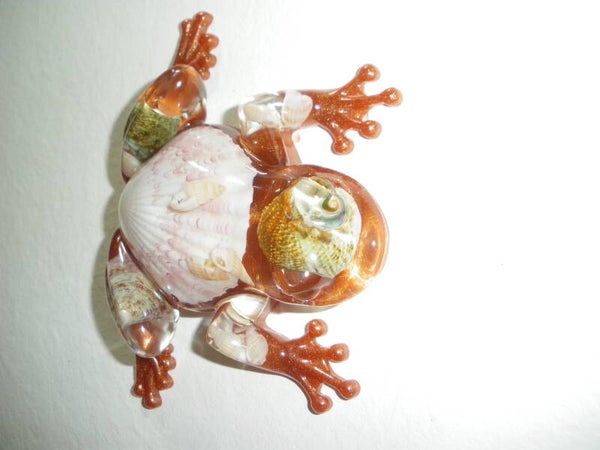 Grenouille en résine époxy avec véritables coquillages beige