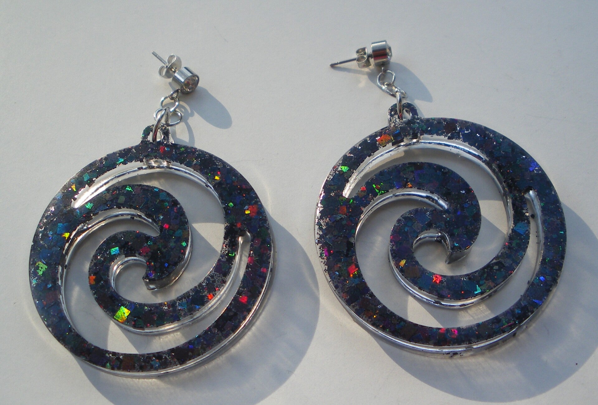 Paire de boucles d'oreilles pour oreilles percées en résine époxy et paillettes
