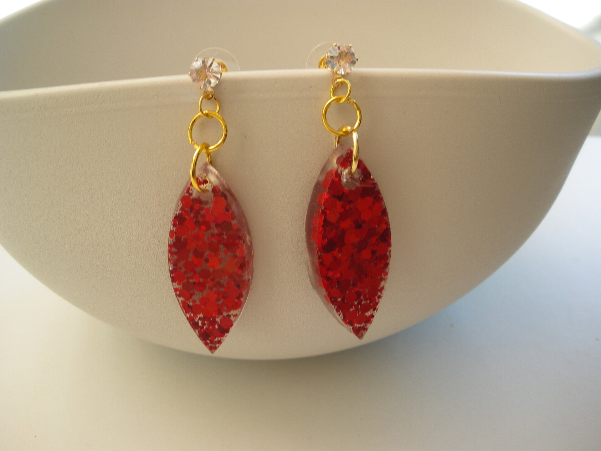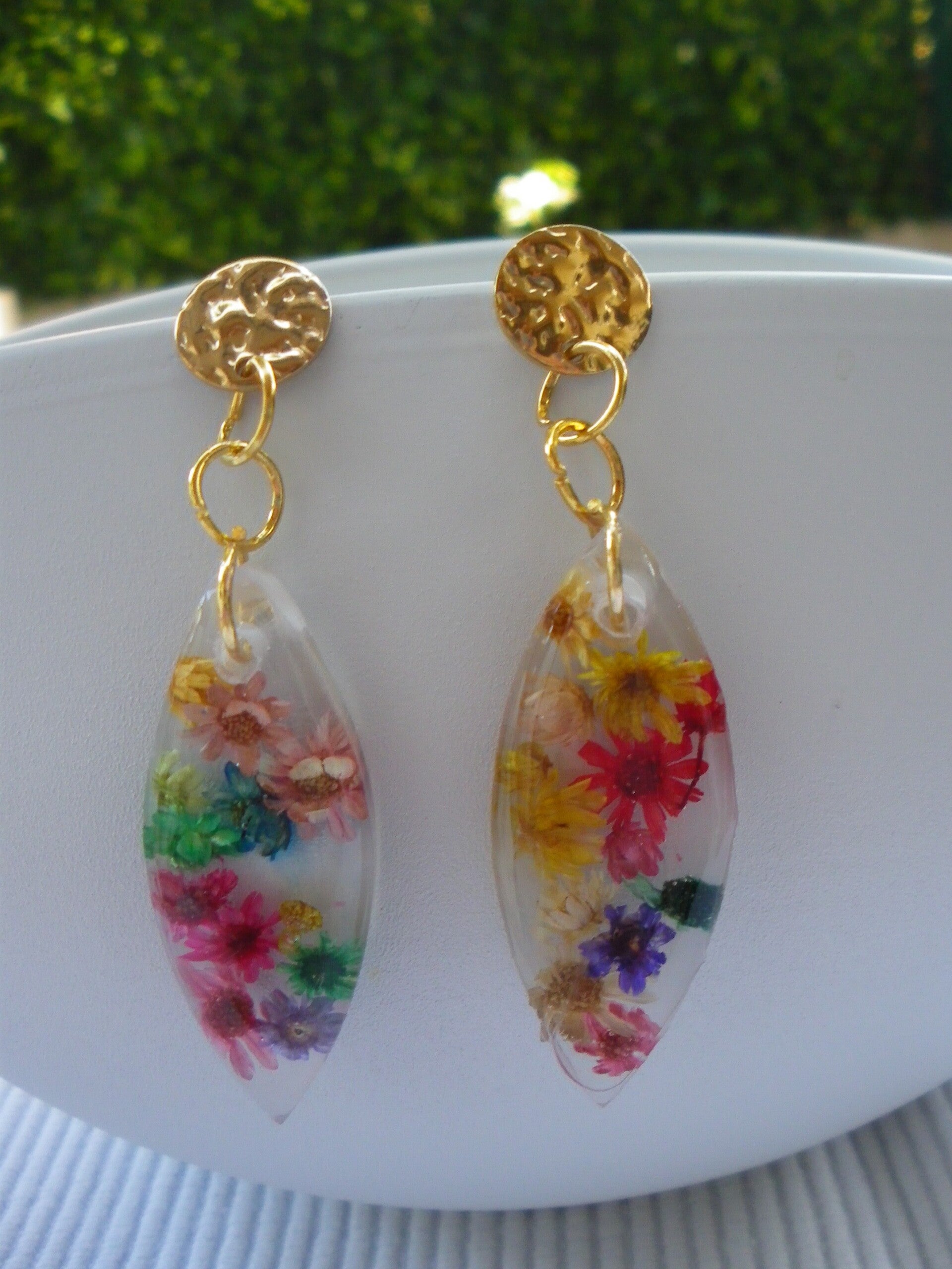 Paire de boucles d'oreilles pour oreilles percées en résine époxy Attache en acier inoxydable doré